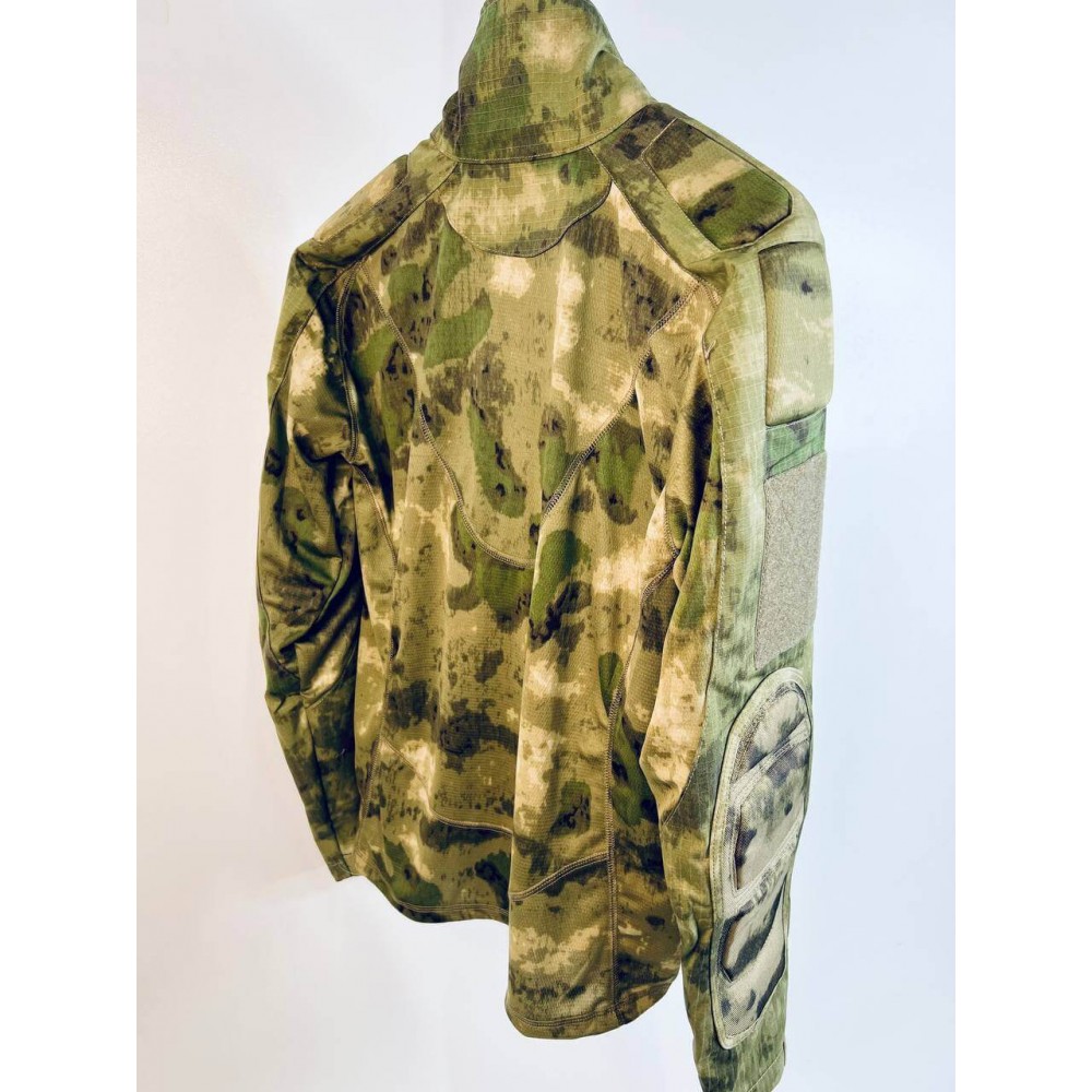 - Рубашка: У рубашки есть усиленная планка, застегивающаяся на молнию 1/4, а также воротник-стойка с клапаном. Карманы на плечах рубашки оборудованы патч-панелями, а манжеты рукавов застегиваются на велкро.